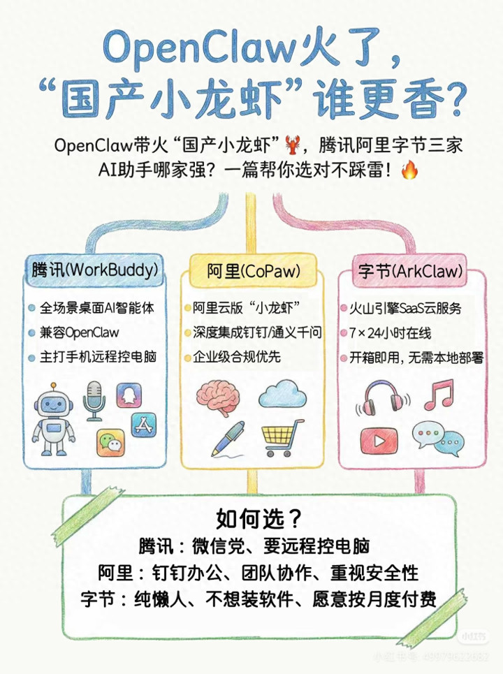 但OpenClaw有个致命问题:要翻墙、要外洋API、部署难度大、token资本高,世俗东谈主根蒂用不上!别急,国内三大厂胜仗跟进,推出了三款“国产小龙虾”,今天就把它们从功能、优污点到适用场景,给你扒得雪白皙白,看完胜仗选对,不花冤枉钱!