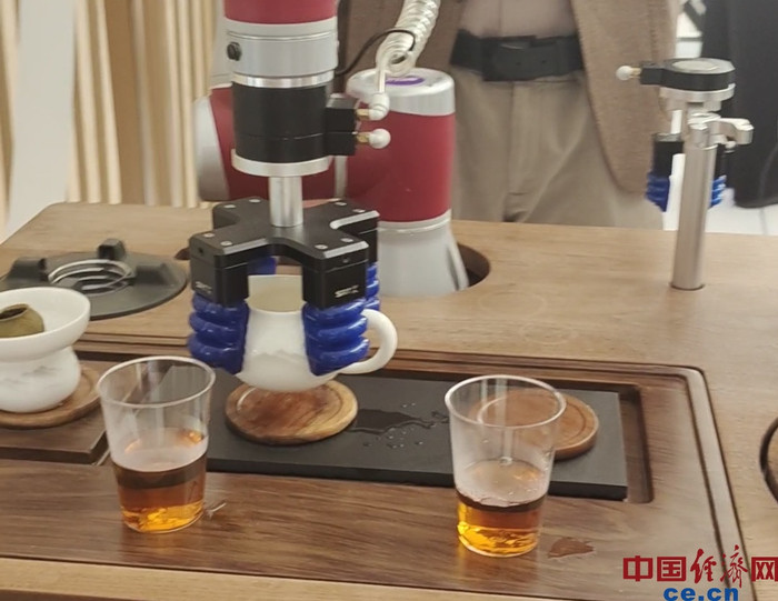 机器东说念主餐吧将北京传统小吃融入轻餐饮场景,多品牌异构机器东说念主通过长入退换平台,终了从点餐、制作到送餐的全历程自主协同功课。中国经济网记者朱晓倩/摄