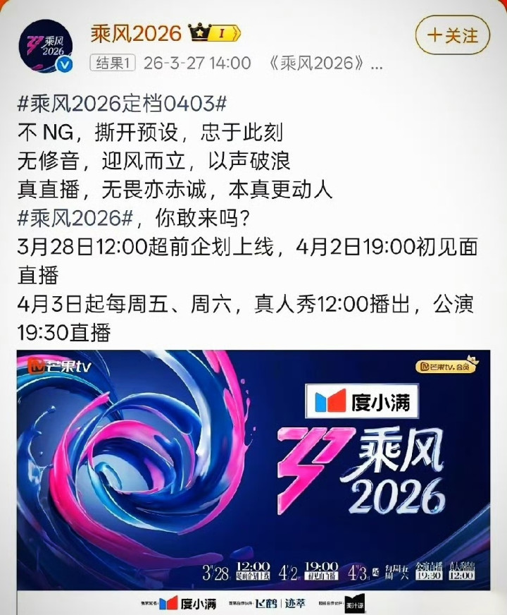 《乘风2026》的官宣无疑为千里寂已久的综艺阛阓注入了一剂强心针。在“修音成风”确当下,节目组选择用最原始的阵势呈现舞台,既是对姐姐们实力的熟习,亦然对不雅众审好意思的挑战。4月3日初舞台直播行将到来,这场“无滤镜、无修音”的乘风破浪之旅,能否再次掀翻全民热议?让咱们翘首企足。