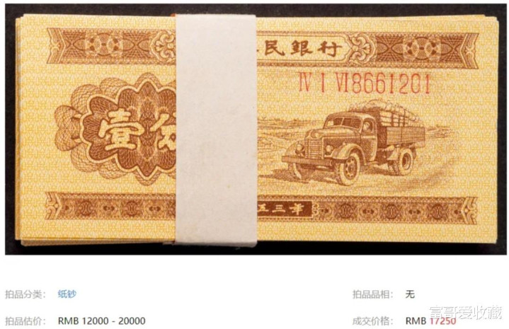 其实,在客岁的保利拍卖会中,就有一刀1953年的1分纸币,估价达到了2万!