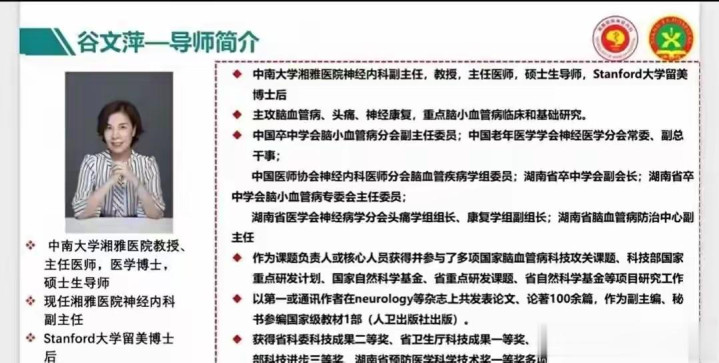 1990年毕业于湖南医科大学,一齐读到医学博士;2002—2003年远赴好意思国斯坦福大学医学中风中心作念博士后,专攻脑血管病转基因调整,是简直喝过“洋墨水”的顶尖东说念主才。归国后扎根湘雅,从主治医生作念到神经内科副主任、主任医生,照旧硕士生导师,手持多项国度、省级科研课题,发表论文80余篇,拿过省科技最初奖、卫生部奖项,兼任中国卒中学会脑小血管病分会常委、湖南省脑血管病防治中心副主任等十几个伏击职务。