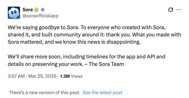 SoraApp官方嘱托媒体账号也晓谕了关停的音信