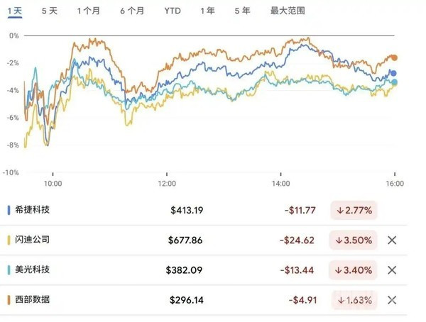 在谷歌发布TurboQuant后的第一个好意思股交夙昔,存储芯片板块在盘中集体跳水,多家中枢企业均遭遇不同进度的市值冲击。闪迪股价一度大跌6.5%,收盘时跌幅收窄至3.5%,市值弃世36.3亿好意思元;好意思光科技下降3.4%,市值弃世151.66亿好意思元;西部数据下降1.63%,市值弃世16.64亿好意思元;希捷科技下降2.76%,市值弃世21.4亿好意思元。