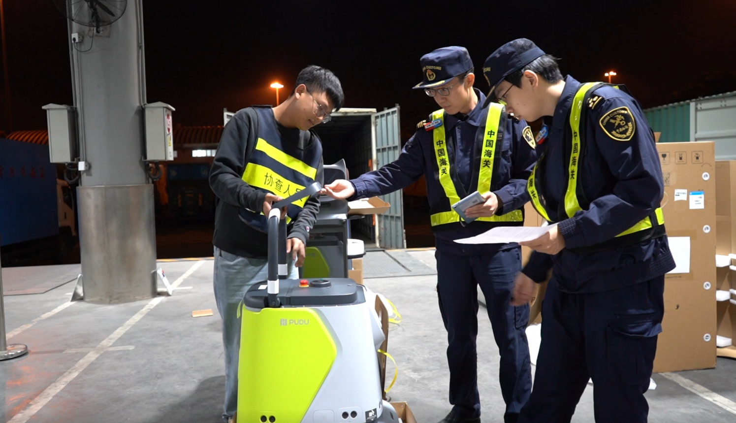 深圳湾港口监管收支口货车量占深圳关区六成以上。依托该港口跨境货车24小时通关模式和“零延时”通关的深圳速率,普渡机器东说念主的智能清洁机器东说念主成为中国新年“首票”通关货品,将被发往东盟、欧盟等阛阓,哄骗于商超、机场等场景。