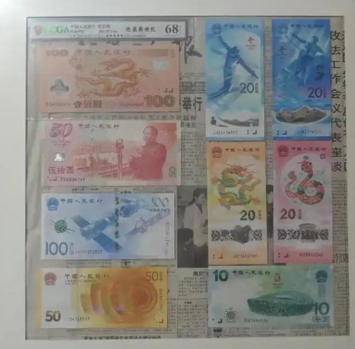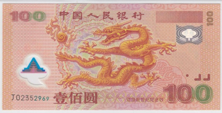 接下来的第二张是2000年刊行的千禧龙钞。它是中国首张塑料钞,题材是中华英才的灵魂美艳——龙。刊行量1000万张。