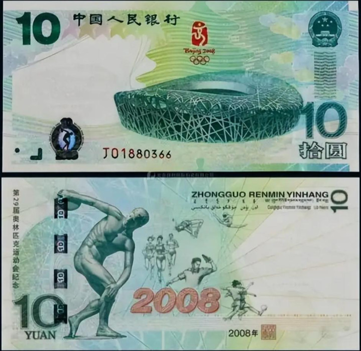 我们要看的是2008年刊行的奥运缅念念钞。这张财富是中国钱币史上的古迹,它从面值10元起步,咫尺的价钱稳稳地站在了2000元凹凸。为什么?
